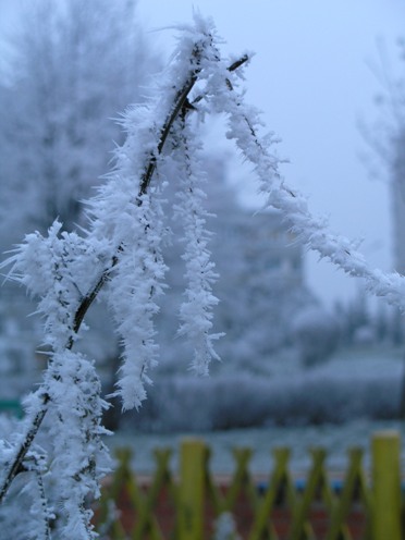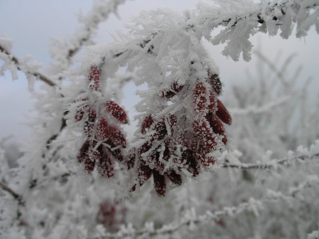 Ale.. temperatura spadła poniżej zera, przez dwa dni utrzymywały się mgły, które nasyciły powietrze wilgocią i w efekcie wszystkie roślinki pokryły się bajecznymi igiełkami szronu. Niektóre miały długość nawet to 4 cm!