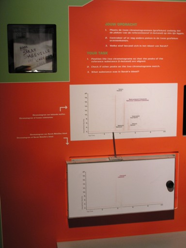 Tytuł drugiej wystawy to “Sprawy kryminalne. Od odcisku palca do badania DNA”. Cała zabawa polega na rozwiązaniu zagadki morderstwa.