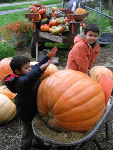 h_catpumpkin.gifNajpierw trzeba zdobyć dynie. Zazwyczaj jedzie się na tzw. „Pumpkin Patch” czyli do gospodarstwa, gdzie hodują dynie i gdzie można je samemu zebrać sobie z pola lub też (wersja dla leniwych) wziąć z koszy. Rozmiary bywają różne. Od liliputków po giganty o 2m średnicy. Oczywiście tych ostatnich nikt nie kupuje. Na Jack-o-latren najlepsze są pomarańczowe dynie wielkości piłki do gry w nogę lub większe. Spróbujcie taką kupić w Polsce. A przynajmniej w moim mieście! Skończyło się na tym, że użyłam dynie.. ozdobne. Przy rzeźbieniu nic się nie marnuje. Pestki odkłada się do suszenia, a miąższ zużywa do zupy i/lub ciasta. Jeszcze tylko świeczki do środka i gotowe.