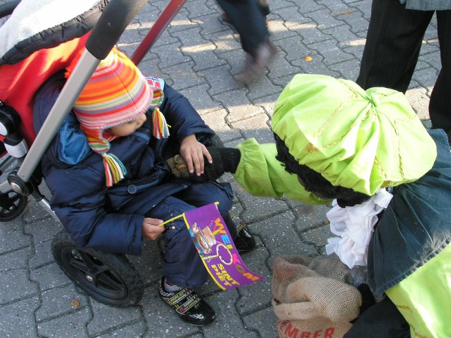 Jest to bardzo ważne wydarzenie dla wszystkich dzieciaków i żadne z nich nie przepuści tej imprezy, która ma miejsce w listopadzie (od 1994 jest to zawsze pierwsza sobota po św. Marcinie). Już jakiś miesiąc wcześniej w telewizji pojawia się program Sinterklass Journal, w którym na bieżąco relacjonuje się podróż świętego z Hiszpanii oraz jakie nowe psoty wymyślili jego pomocnicy. Muszę bowiem dodać, że Zwarte Piet (czyli Czarny Piotruś) jest prawie tak samo ważny jak sam święty. Głównym zadaniem Zwarte Piet jest dźwiganie worka z prezentami, wspinanie się na dachy, wchodzenie do domu przez komin i zostawianie paczuszek dla dzieci w ich butach. Choć tak na prawdę to po prostu uwielbia psocić.