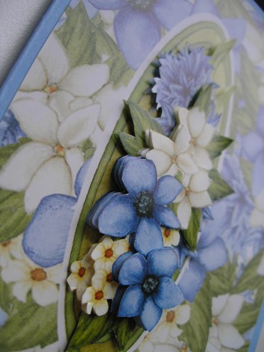 c_card.JPGTa kartka została wykonana w technice 3D (czyli trójwymiarowej). Chodzi tu o złudzenie występowania centralnego (najczęściej) fragmentu kartki w kierunku oglądającego, dzięki naklejeniu jedna na drugą kilku warstw motywu. Poszczególne warstwy są do siebie przyklejane za pomocą dwustronnej taśmy klejącej na grubszej poduszeczce (jej grubość to zazwyczaj 2-3 mm, choć może być nawet 5 mm ;).